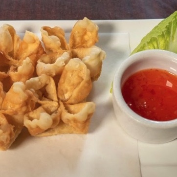 Deep fried wonton wrap stuffed with fresh crab meat,cream cheese, served with sweet plum sauce