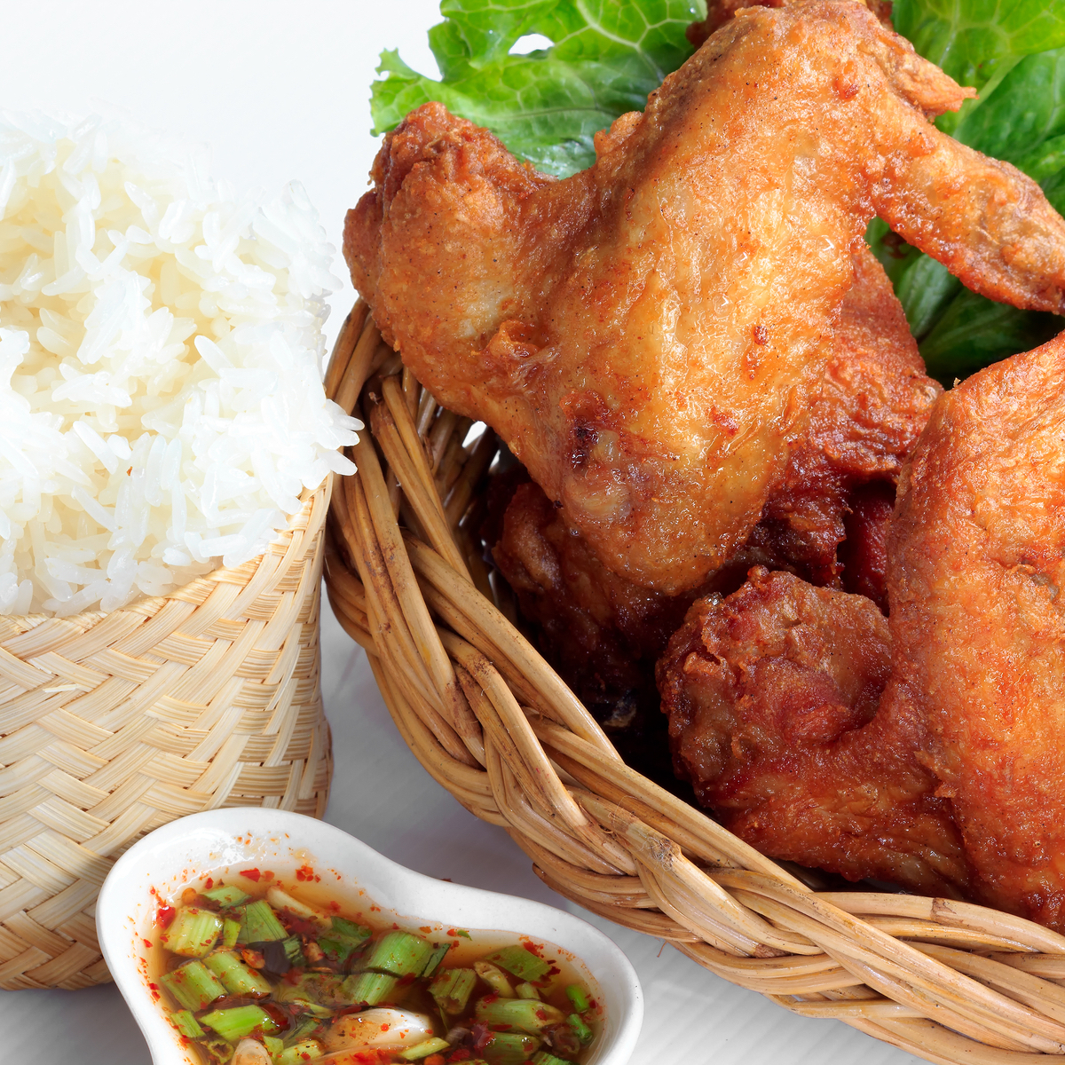 Spicy fish cakes made with red curry paste,green bean and kaffir lime leaves,deep-fried golden brown. Served with fresh cucumber and sweet chili sauce